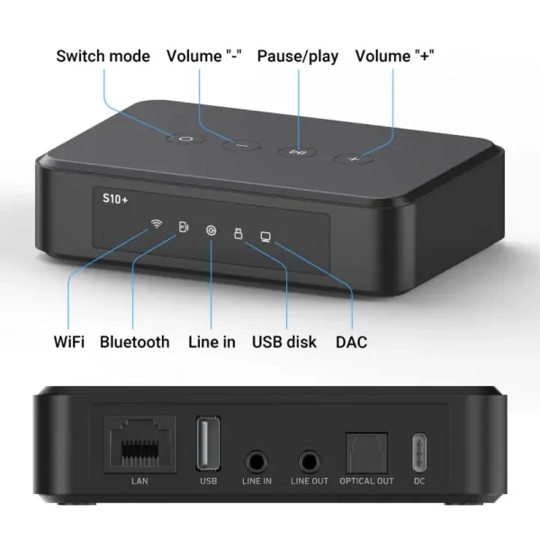 - 🎶Multi-room System: Set up each S10+ or Arylic streaming devices with your sound system in every room, you can play the same song across all rooms simultaneously or different songs in separate rooms at the same time. And control all sound system in 4Stream APP, Switch connection mode,separate control the volume, EQ or multiroom streaming from different music sources.