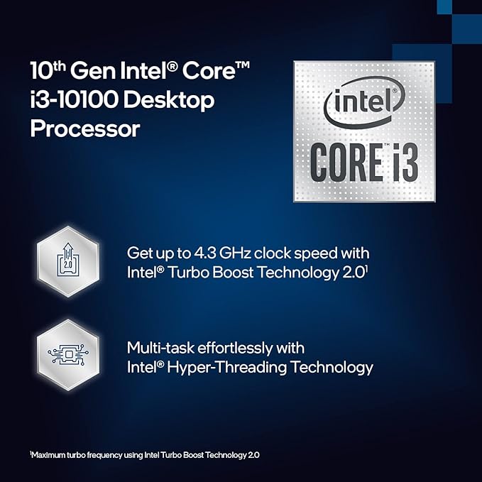 - Intel Core i3-10100 Processor (6M Cache, up to 4.30 GHz)